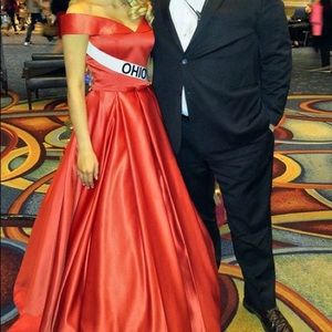 Stunning Red Custom Off-The Shoulder Gown for pageant, prom, wedding, gala, etc.