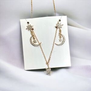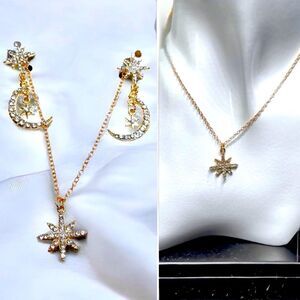 Custom Set l 8-Point Star Rhinestone Necklace & Dangle Drop Earrings l New l