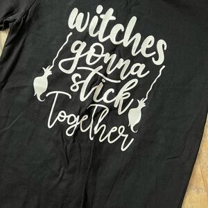 Smoke and pet free home Never worn Black and white “Witches gonna stick together” True to size slim fit 🔮Pit to pit-15 inches 🖤Length- 26 inches