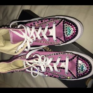 These are a beautiful pair of Swarovski & Precoisa Crystal Customize Converse Sneakers. These sneakers are BRAND NEW & Never been worn. The sneakers cost $65 and to customize them is $175 total of $240 but I'm selling them for a low price. You won't get these type of sneakers from anywhere. These Converse are one of a kind and will turn heads.