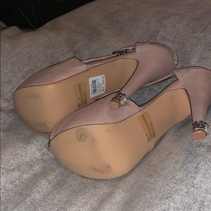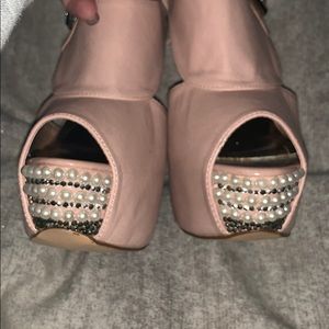 Size 7 Tan Heels. Customized with pearls and bling. Missing no pearls or diamonds.