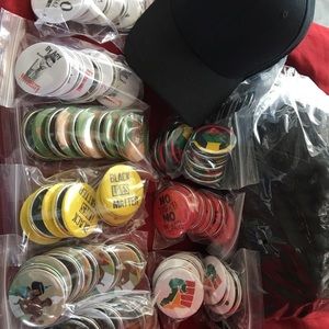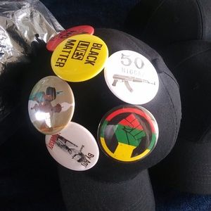 10 different buttons to choose from 5$ a button with a black hat for $10