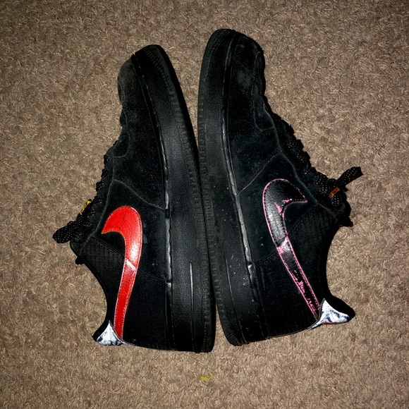 These shoes are size 10, worn but no damage. There has been acrylic paint applied around the shoe.