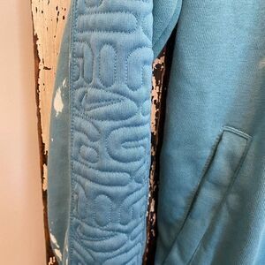 Tag says XL it’s a youth XL/ women’s S. Cool one of a kind hoodie!!!! Cool sleeves w swooshes all down the sleeves. All washed and nice and fresh. From smoke free home.