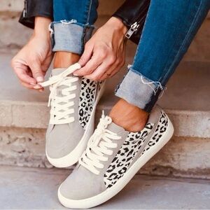 Customized Rhinestone Gray Leopard Platform Sneakers