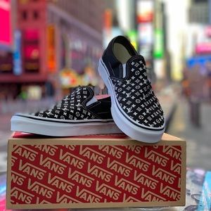 Interested in the black vans with black soles & white lettering.