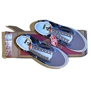 This pair was customized with a motorcycle as the main background print. Brand new. Smoke free, pet free home. Size men’s 9.5/Women’s 11.