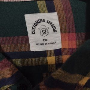 Customized Version by Dubinick 4XL Plaid long sleeves shirt Green/Orange/ Navy. The shirt is pre-owned and in good condition. (Bonus tie included)
