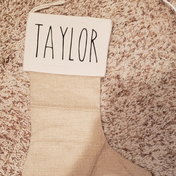 Customized stocking with rae dunn font. Any name can go on these burlap stockings!