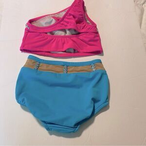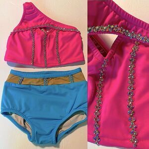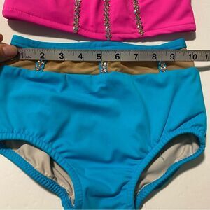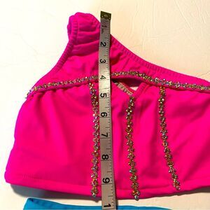 Custom made solo dance costume hot pink neon rhinestone 2 piece set child 10