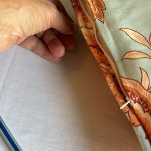 15 x 15” orange and blue custom-made pillow with separate closure, excellent condition, no stains or flaws. See pictures for details