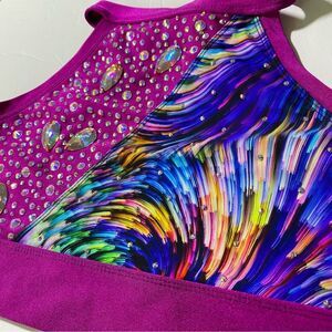Custom solo dance costume neon convention colorful 2 piece set firework 14