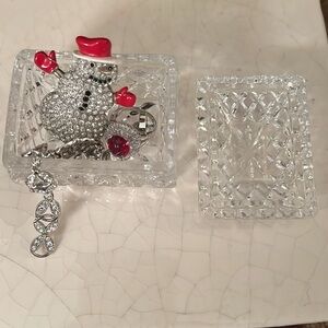 Cut Glass Princess Trinket Box, Pressed Glass Rectangular Tiny Glass Container