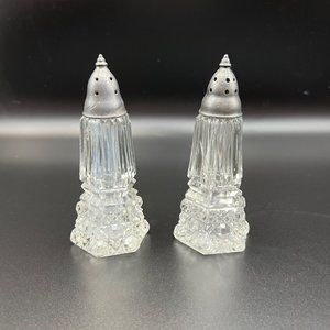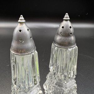 Cut Glass Salt & Pepper Shaker Pewter Toppers