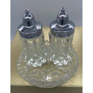Cut Glass Salt and Pepper Shakers Set with Tray
