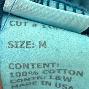 100% cotton. Teal blue. Tie detail to neck. Open knot mesh material.