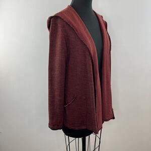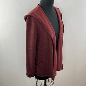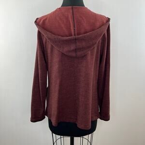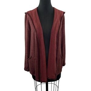 Cut Loose Burgundy Red Fleece Open Front Hoodie Cardigan Sweater Relaxed Fit S