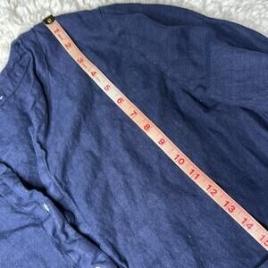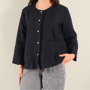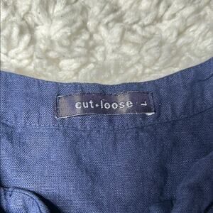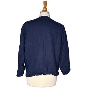 Cut Loose Indigo 100% Linen Blouse Button Front Pockets Lagenlook Made in USA