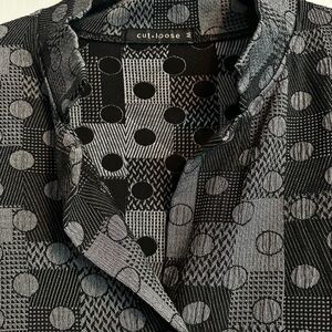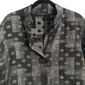 Cut Loose Two Button Jacket Front Pockets Gray Polka Dots Size Medium Lagenlook