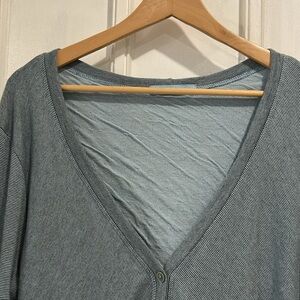 Style profile: lagenlook minimalist oversized slouchy soft cotton blend cardigan sweater button up v neck striped color block Cut Loose