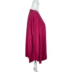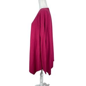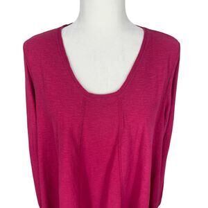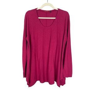 Linen cotton blend tunic top with asymmetric hem, long sleeves, scoop neck. Seam details to center front. 70% cotton, 30% linen. Dark pink. Size XXL. Please see photos for measurement.