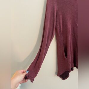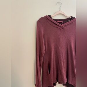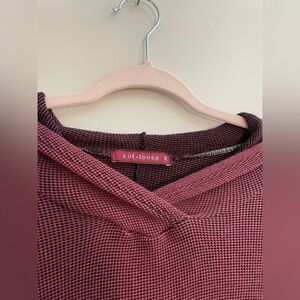 Cut • Loose Maroon Hooded Long Sleeve Top