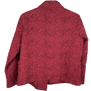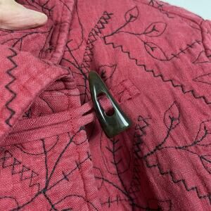 Cut Loose Quilted Linen Jacket Women L Red Embroidered Pockets Boho Lagenlook