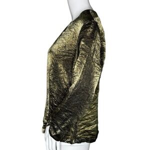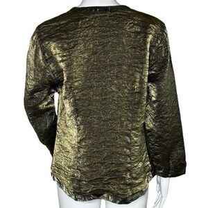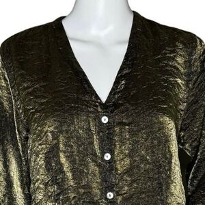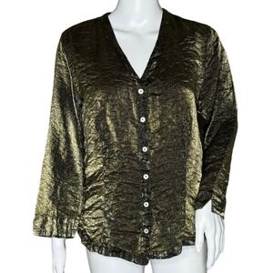 Cut Loose Shirt Womens Medium Green Iridescent Button Up Crinkle Shimmer Artsy
