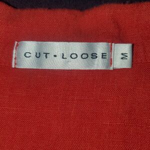 Cut Loose Size Medium Linen Women's Button Up Top Red and Mother of Pearl