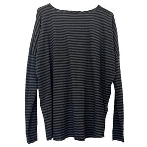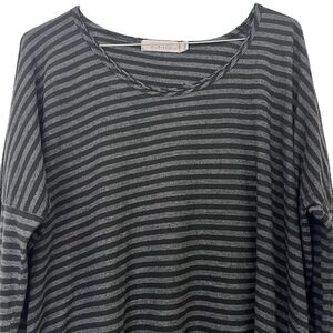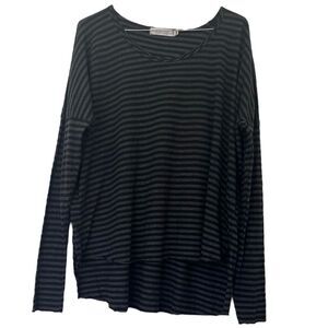 Cut Loose Striped Top One Size Long Sleeve High Low Hem Gray Black Raw Edge USA