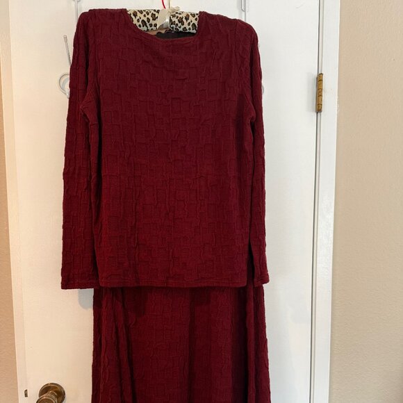 Cut Loose Sweater Set – Top & Skirt – Burgundy, Size Large NWOT