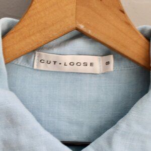 Cut Loose VTG Y2K Light Blue Linen Long Sleeve Button-Up Shirt Size 8 / Medium