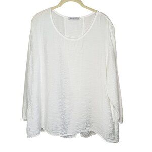 Cut Loose White Crinkle Long Sleeve Blouse, XL