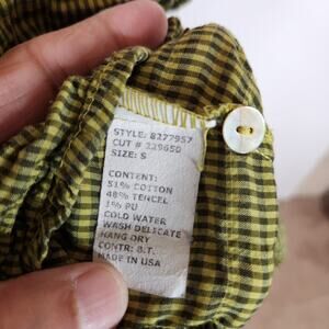 Cut Loose Womens Crinkle Collared Button Up Shirt Size Small in Green Gingham Check.