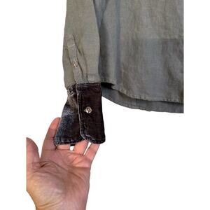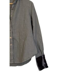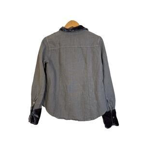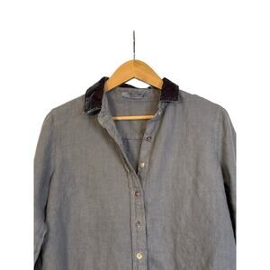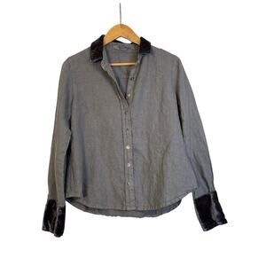 Cut Loose Women's Long Sleeve Velvet Trim Linen Button Front Shirt Size XS Gray