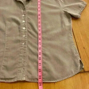 Cut Loose Women's Short Sleeve Button Down Tensel Soft Khake Blouse medium