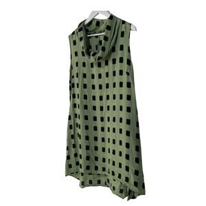 Cut Loose Womens Size Medium Cowl Neck A-Line Mini Dress Geo Print Green Black