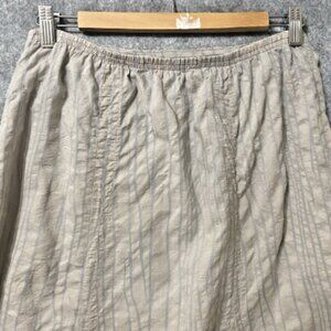 The Cut-Loose Women's S Light Weight semi sheer, Cotton Midi Striped Cinched Skirt in beige and blue is a stylish and comfortable addition to any woman's wardrobe. Made of cotton with an elastic waist in back., this A-line skirt is perfect for the summer, fall, and spring seasons. The lightweight and stretchy fabric ensures a comfortable and easy wear, while the pull-on closure makes it convenient for everyday wear. The farmhouse theme adds a touch of charm to this versatile piece, making it a must-have for any fashion-forward woman.