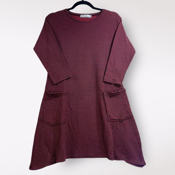 Cut Loose XS Dress 3/4 Sleeve Striped Pockets Shift Maroon Midi Raglan Cozy $129