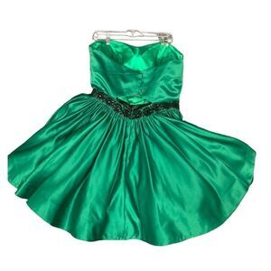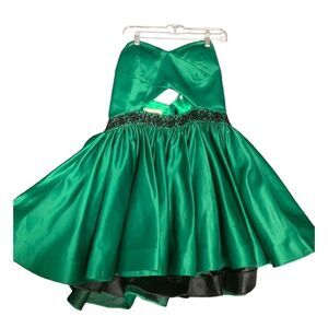 Ladies super cute emerald green peep hole cut out back detail strapless prom style formal party dress. Excellent condition. Ladies size 3X.