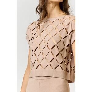 Cut Out Detail Sweater Top in Tan