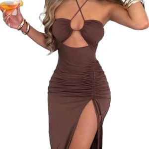 Cut Out Drawstring Ruched High Slit Bodycon Dress (NWOT)