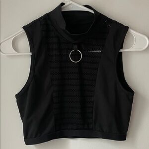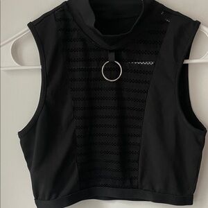 Elevate your style with this chic black sleeveless top. Featuring a modern ring detail, it's perfect for any occasion.