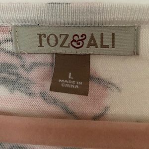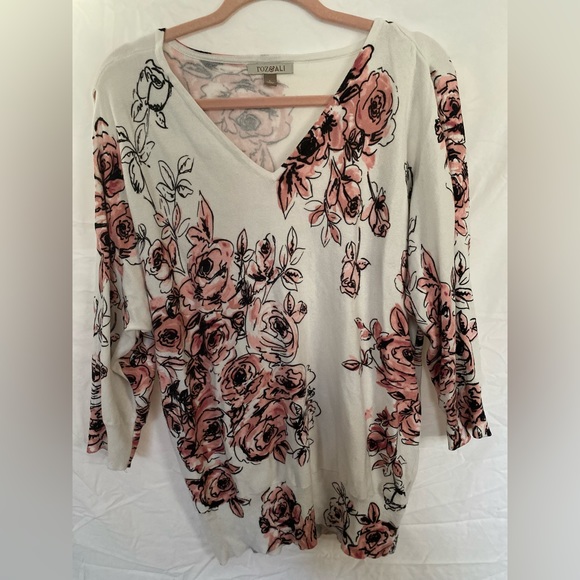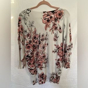 floral cutout shoulder top. in good condition and any imperfections can be seen in the pictures. ***that is not a hole! it is where the shirt is cut on the shoulders!!****
