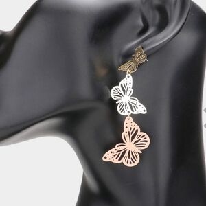 Cut Out Triple Metal Butterfly Link Dangle Earrings NWT