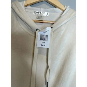 Cut & Paste velour hoodie sweatshirt pullover velvet ivory cream size Large NWT