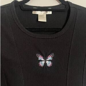 Cut and Paste Small Dress Y2K Butterfly Black Bodycon Ribbed Fitted California