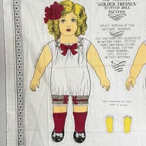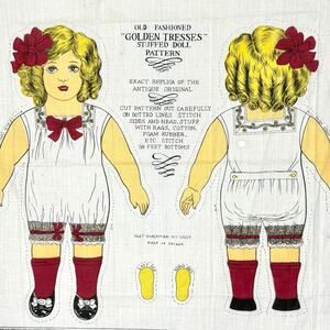 Cut and Sew Fabric Panel Doll Pattern Golden Tresses Stuffed Toy 18 Inch Vintage