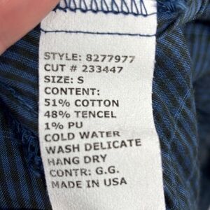 Cut loose tunic blouse navy blue black stripe long sleeveve s cotton tencel