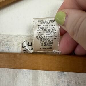 Great used condition-no holes, rips, tears or stains. 58% Cotton, 39% Polyester, 3% Spandex-machine washable. V-neck. Lace Trim. Babydoll. Crop Top. Short Sleeves.